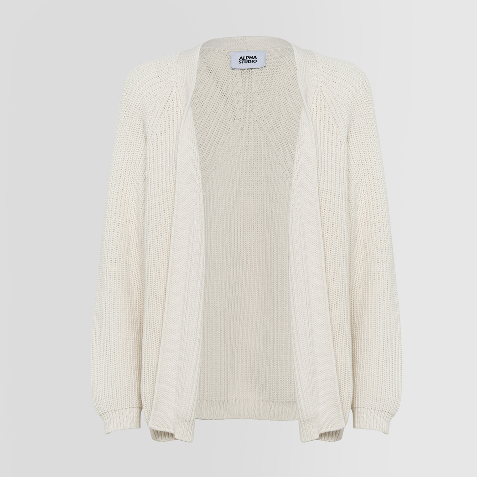 Maglia cardigan in cotone soffiato tinta unita con punto maglia perlata. Maniche lunghe raglan. Collo sciallato e chiusura senza bottoni. Regular fit. COMPOSIZIONE: 68% COTONE 32% POLIAMMIDE.